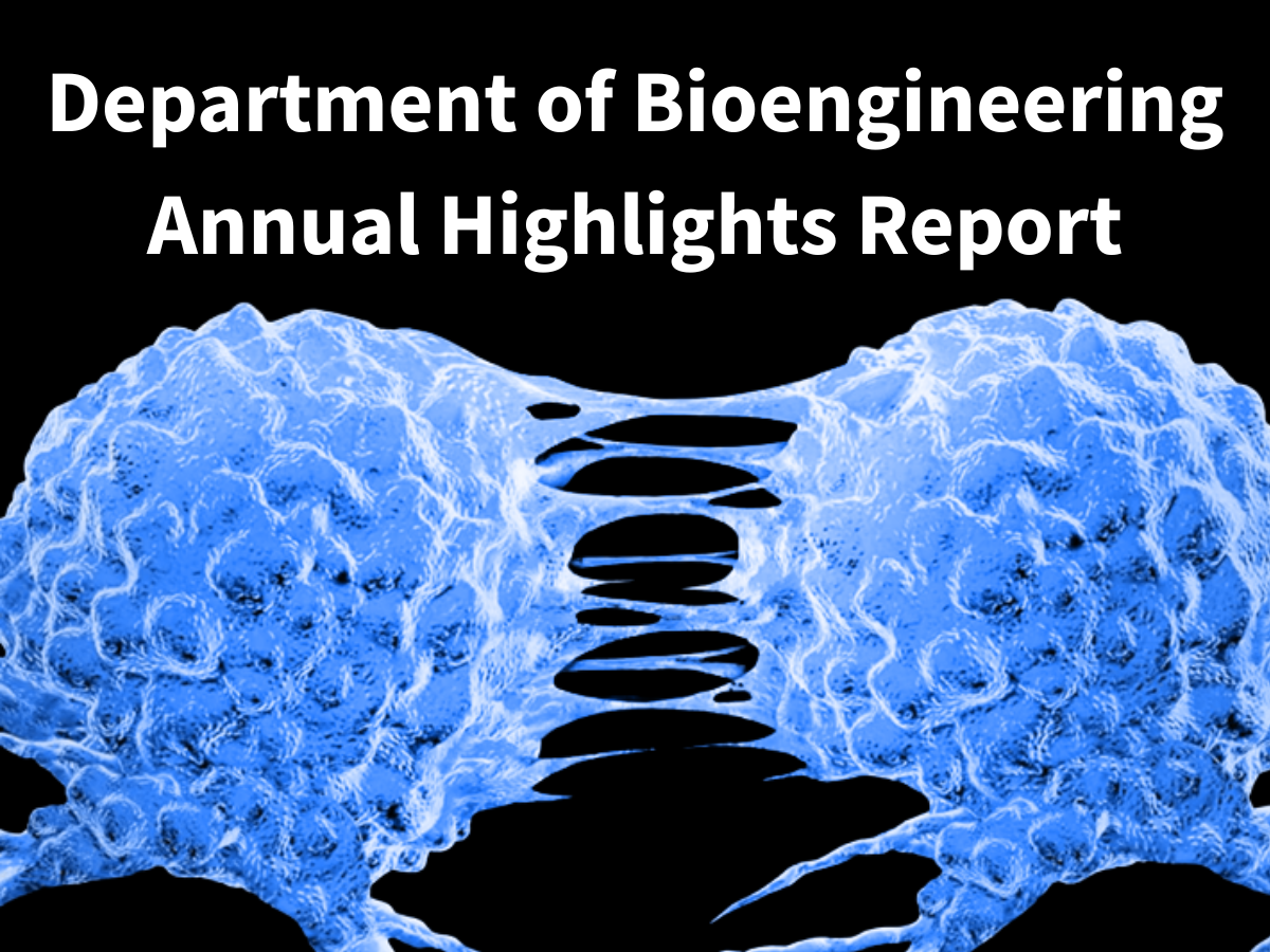 Each year, the Department of Bioengineering releases its Annual Highlights Report. This report details all of our most impactful research, our student's achievements, departmental accolades, and other noteworthy events from the past year. We invite you to explore the progress the department has made this year and our vision for the years to come.